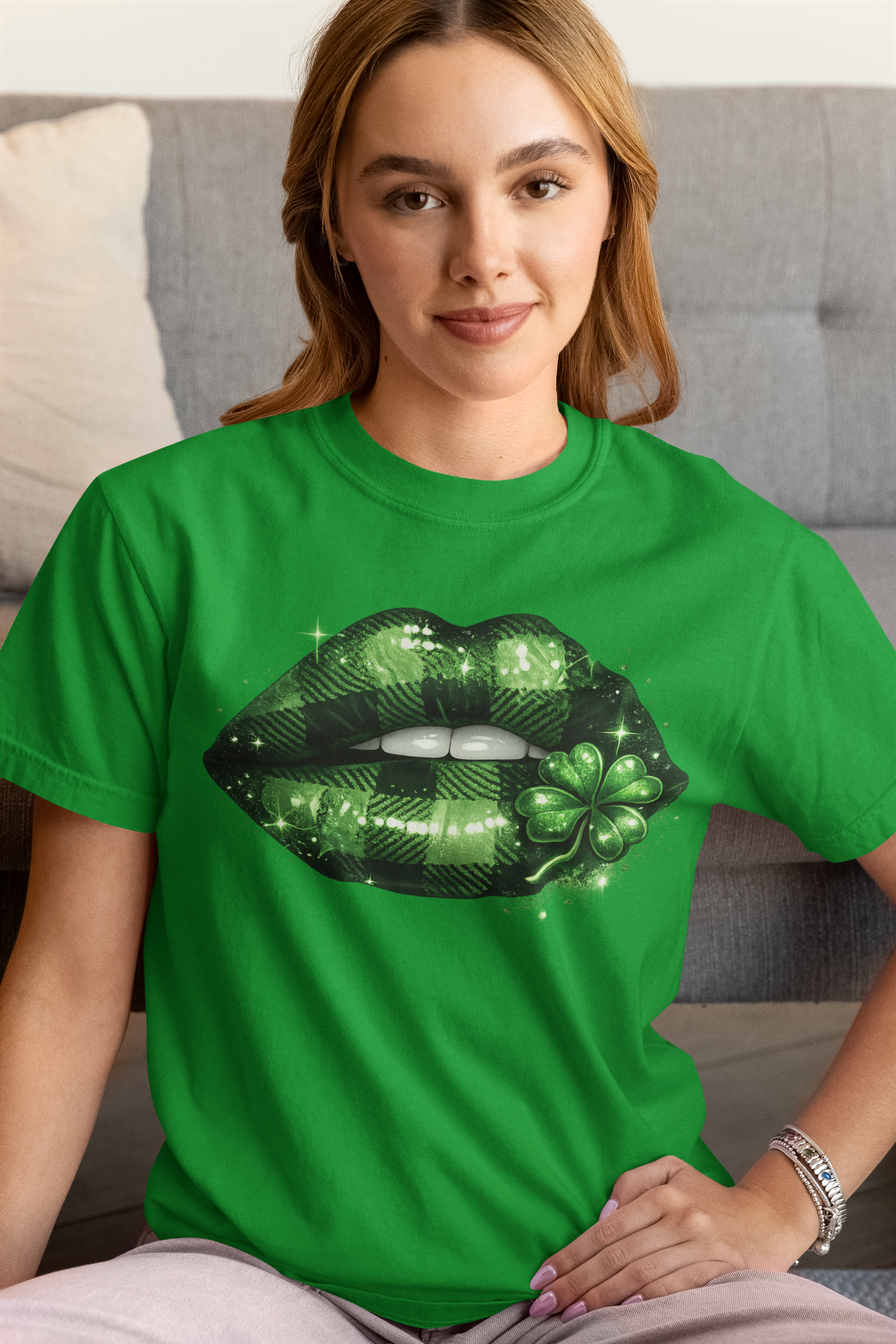 ✔ Sexy plaid green lips with shamrock graphic